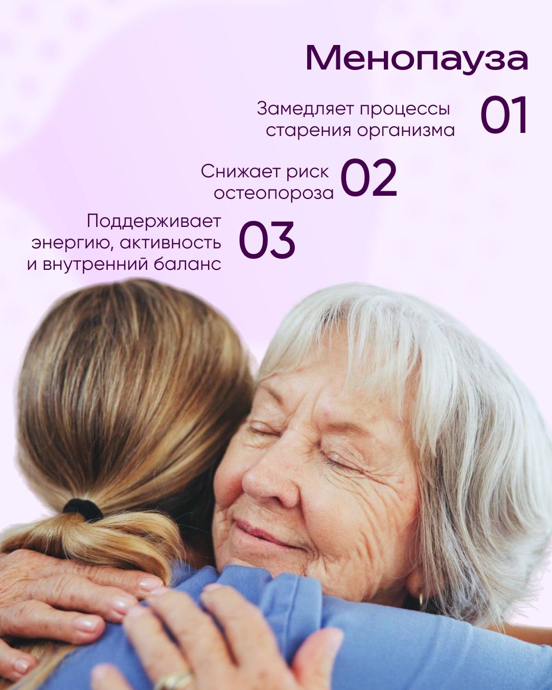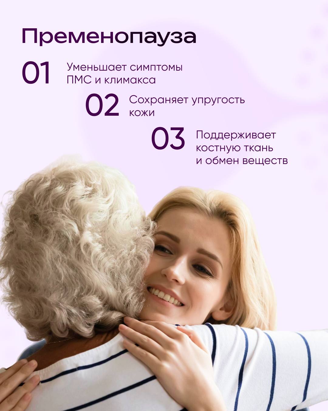 Облегчает симптомы менопаузы, восстанавливает синтез коллагена, ремодулирует костную ткань...